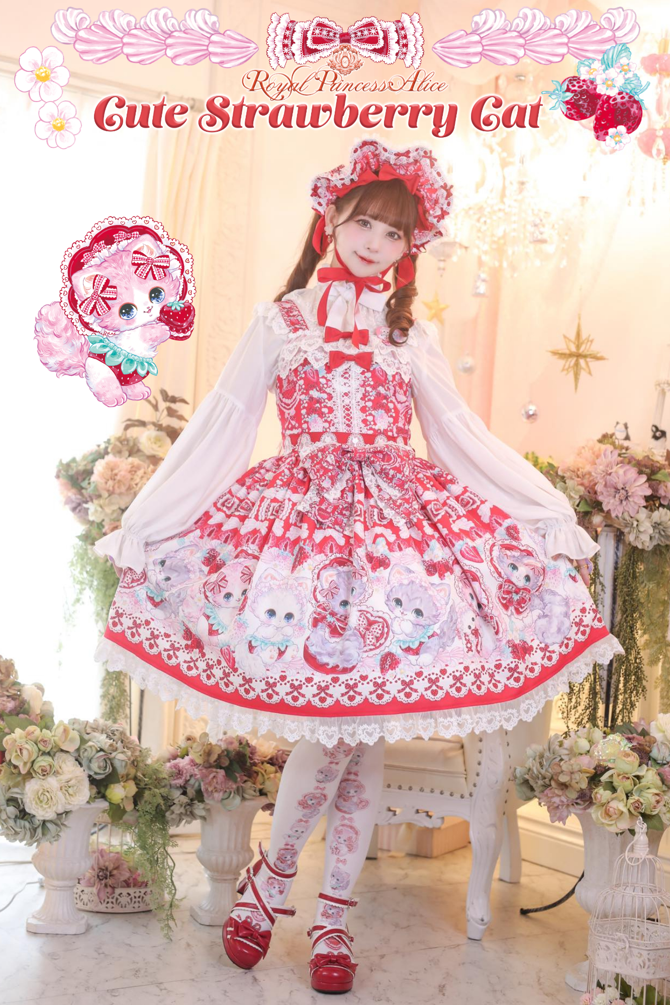Sweet Strawberry Cat 飴ノ森ふみかコラボ・ジャンパースカート(赤)即納品