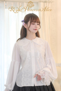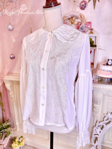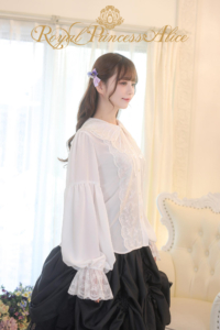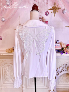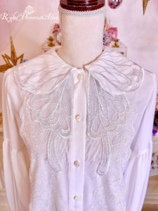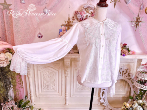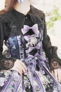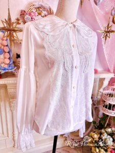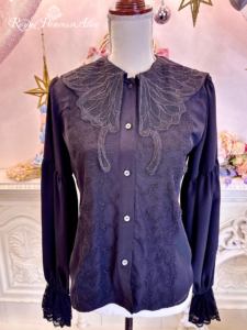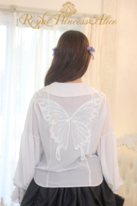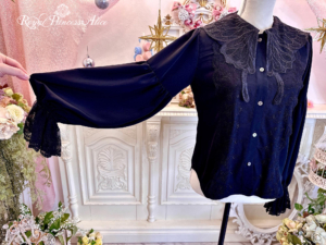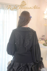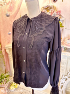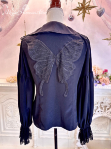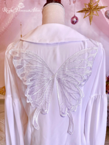 また、袖口と前立てにも蝶々のレースを使用いたしました。