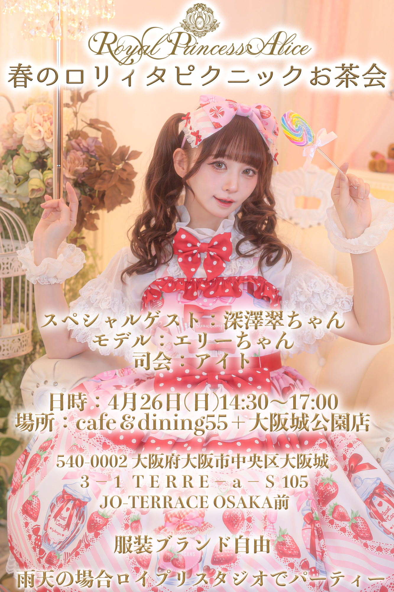 RoyalPrincessAliceのお洋服でご来場の方には、写真撮影会+翠ちゃん、ゆいんちゃん、ありかみうちゃん、藤城リエちゃんとの動画撮影がございます。